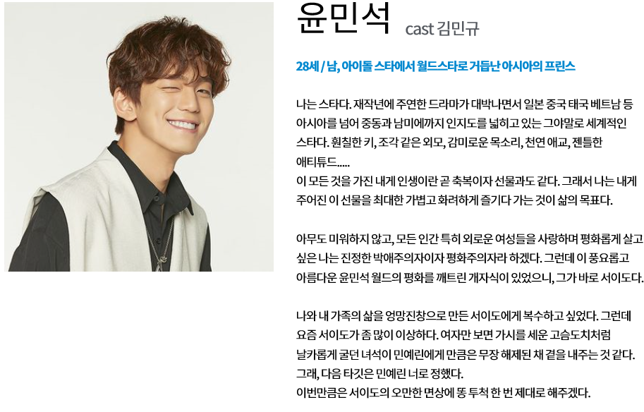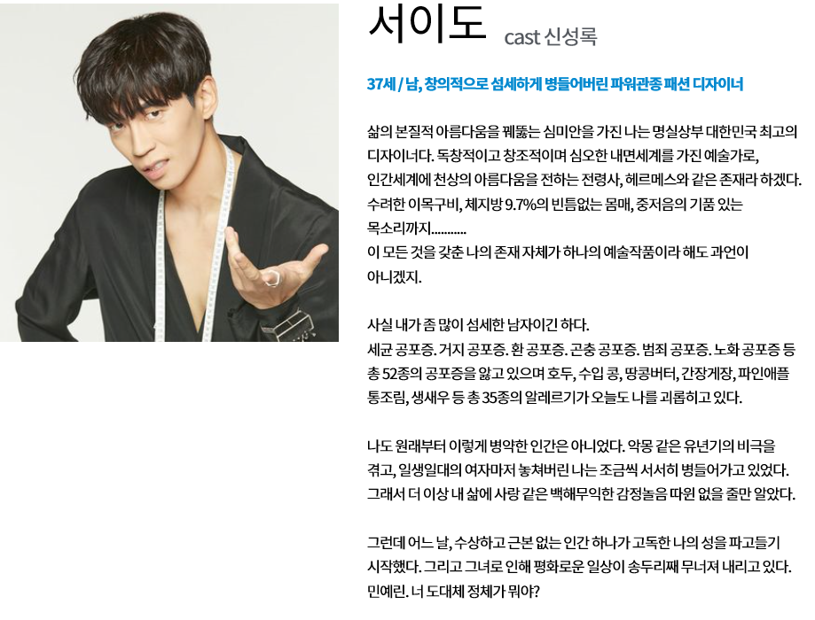 드라마 퍼퓸의 등장인물에 대해서 알아보도록 하겠습니다. 주연급 배우는 총 5명으로 볼 수 있습니다. 신성록, 고원희, 민재희, 한지나, 윤민석이라 할 수 있겠는데요. 순서대로 극중에서 서이도 민예린 민재희 한지나 윤민석 역할을 맡았습니다. 자세한 인물정보는 공식홈페이지에서 캡쳐한 캡쳐본을 참고하시면 되겠습니다.
