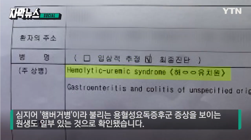 더 큰 문제는 일부 식중독 유치원생들 중 일부는 일명 햄버거병이라고 불리는 용혈성요독증후군 증상을 보이는 경우도 있다고 합니다. 햄버거병 같은 경우 덜 익은 패티에서 주로 발병된다고 알려져 있습니다. 햄버거 병 같은 경우 신장기능에 매우 치명적이니다. 특히, 어린아이 같은 경우 그 위험성이 더 클 수 밖에 없습니다. 현재 구체적으로 균이 어디서 발생했는지는 밝혀지지 않았습니다. 또 한가지 문제점은 해당 유치원 급식은 보관하지 않아 역학조사에 어려움이 있다고 합니다.